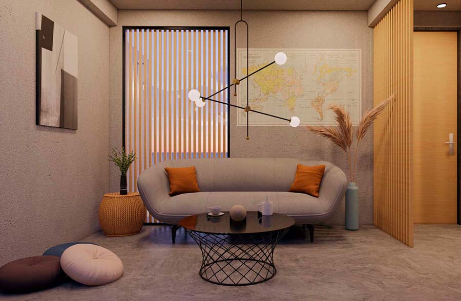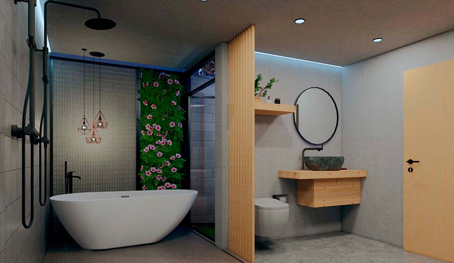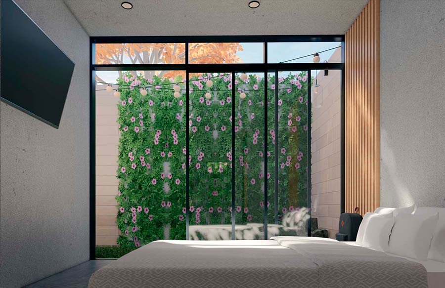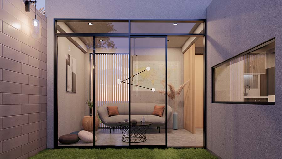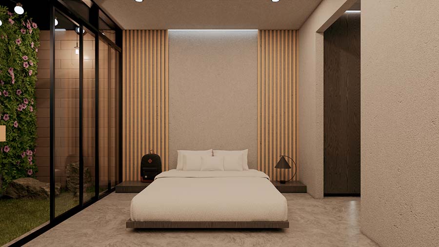 Hermosa casa de 80 m2 de una planta, perteneciente al estilo de arquitectura mínima; donde se han utilizado elementos de la arquitectura japonesa para permitir tener una conexión con el espacio natural, con espacios cómodos y proporcionados, dándole jerarquía a los espacios de calma y relajación, como por ejemplo tomar un baño, leer un libro o simplemente tomar una siesta.