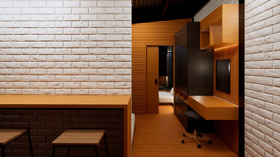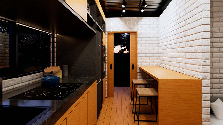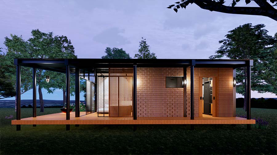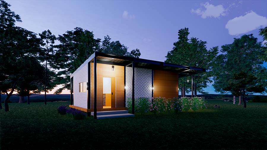 Hermosa cabaña de 57,5 m2 de una planta, perteneciente al estilo de arquitectura Tiny house; combinando el estilo campestre con el estilo contemporáneo sus espacios y sus fachadas están en armonía para que el usuario pueda vivir la máxima experiencia de confort en un espacio compacto, ideal para ubicarla rodeada por la naturaleza, ya que los espacios están diseñados para aprovechar las visuales exteriores y convivir con un entorno natural.