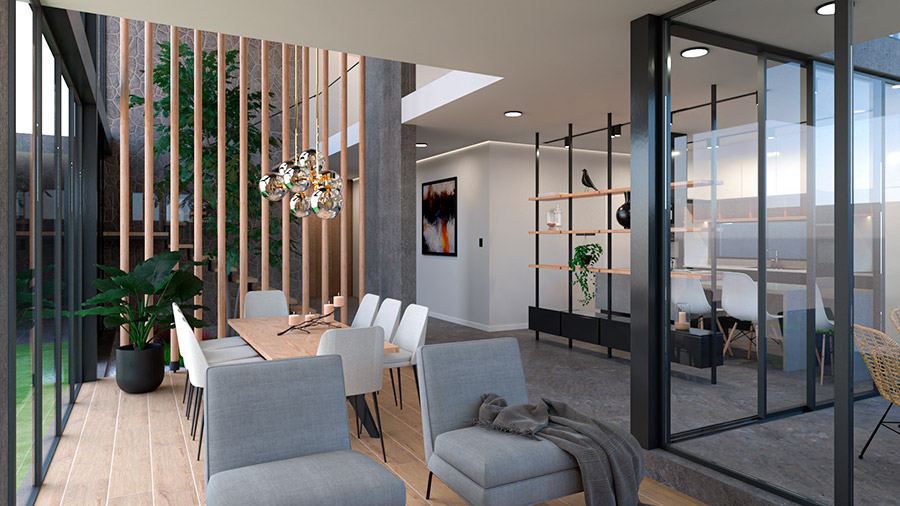 Estos factores han sido tomados en cuenta para los espacios sociales con el objetivo de crear un espacio lleno de luz natural Y con un alto índice de confort para sus usuarios.